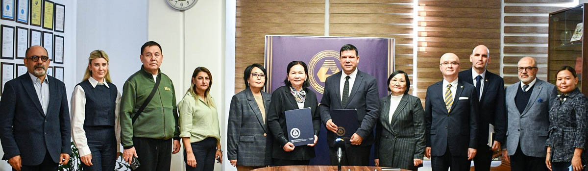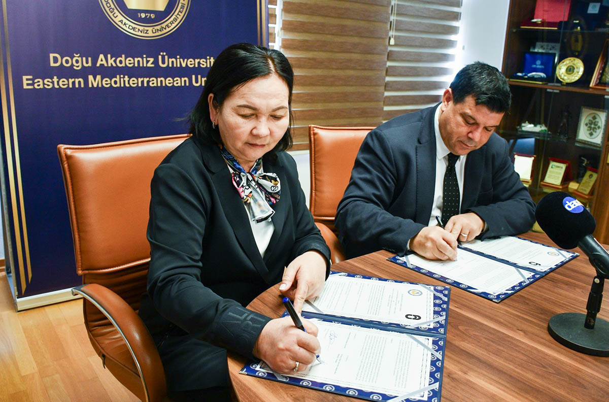 Eastern Mediterranean University (EMU) and Ishenaly Arabaev Kyrgyz State University signed a Memorandum of Understanding with the aim of developing, strengthening and encouraging relations between the two institutions. Signing session took place on Friday, 20 December 2024 at 01:00 p.m. at EMU Rector’s Office building where EMU Rector Prof. Dr. Hasan Kılıç and Ishenaly Arabaev Kyrgyz State University Rector Prof. Dr. Aigul Abdraeva Tolokovna signed the protocol. Present during the signing session were EMU Vice Rectors Prof. Dr. Osman M. Karatepe, Prof. Dr. Salih Katırcıoğlu, Prof. Dr. Sonuç Zorlu and Prof. Dr. Ali Öztüren, and the visiting delegation from the Kyrgyz State University.