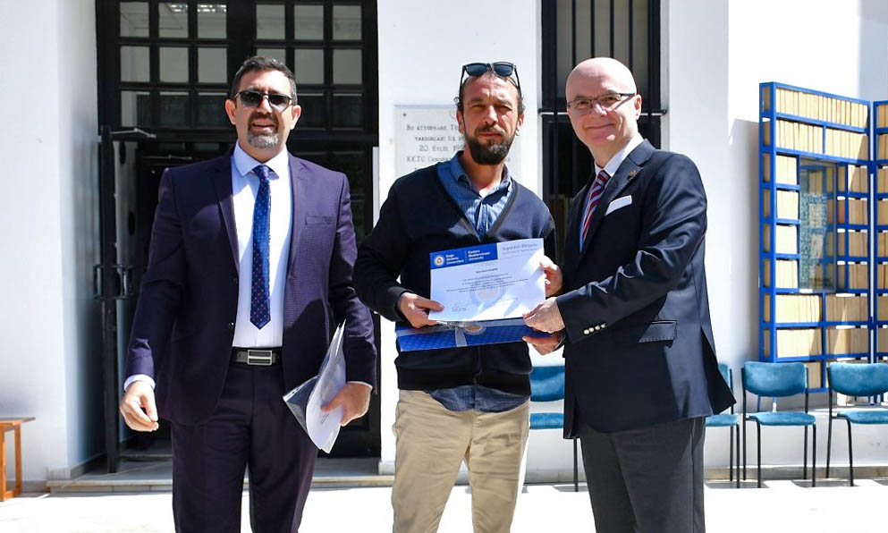 Following the opening speeches, Prof. Dr. Karatere presented plaques to Şehir Zeki Salih Elementary School head teacher for their contributions. On the other hand, Soykan presented a bouquet.