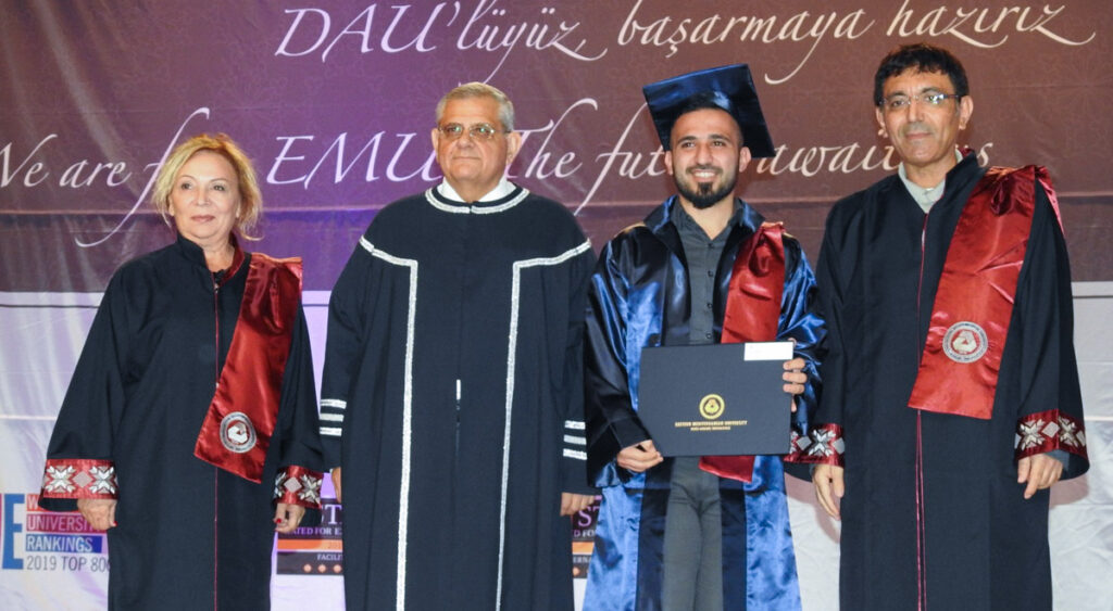 Expressing her honour and joy of being EMU students, Erişen pointed to the hardships and necessary efforts of the post-graduate journey, and stated that they would contribute to humanity and science. Erişen said that they would leave the footprints of EMU wherever they went in the world, and underlined the importance of the friendships they formed in this international campus environment.