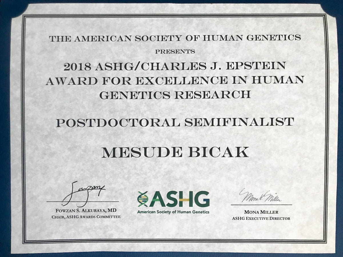 Dr. Mesude Bıçak, a 2006 Fall Semester graduate of Eastern Mediterranean University (EMU) Faculty of Engineering, Department of Computer Engineering, presented her study awarded at the American Society for Human Genetics (ASHG) 2018 Conference. The conference was held at the State of California, USA and with the global participation of 8500 researchers. Last year in October, the conference was held at San Diego and researches on human genetic diseases were presented. Dr. Bıçak advanced to the semi-finals of the competition, to which many researchers from world’s pioneering universities and institutions participated in, and earned the right to receive a monetary award. By developing bio-statistical analyses, Dr. Bıçak studied the mutations and related genes causing prostate cancer. In the results, Dr. Bıçak confirmed a statistical connection between the MSMB and SNHG11 genes which cause cancer. The results were confirmed in the laboratory environment by using CRISPR/Cas9 genetic mutation technology.