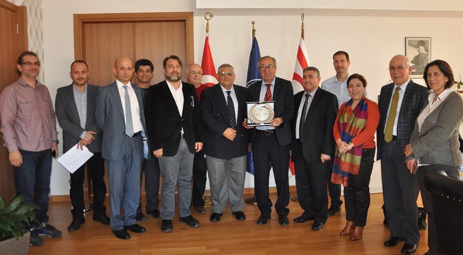 EMU Rector Prof. Dr. Necdet Osam, Vice Rectors Prof. Dr. Ahmet Sözen, Prof. Dr. Hasan Amca, Prof. Dr. Hıfsiye Pulhan, Prof. Dr. Salih Katırcıoğlu and Prof. Dr. Bekir Özer, Rector’s Coordinator Assist. Prof. Dr. Arif Akkeleş, Academic Affairs Coordinators Assist.Prof. Dr. Hüseyin Etikan, Dr. İsmail Erkan Arkın, Student Affairs Coordinators Assoc. Prof. Dr. Derviş Subaşı and Sen. Inst. Mutlu Kale and Technical Affairs and Institutional Relations Coordinator Assist. Prof. Dr. Mürüde Çelikağ were present at the plaque presentation ceremony which took place at the Rector’s Office on 1 March 2016.