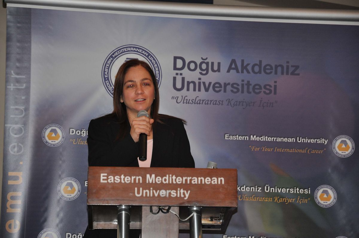 The opening ceremony started with the national anthem and the screening of EMU Promotional Film. Assist. Prof. Dr. Deniz İşçioğlu, EMU Business Department Chair Assoc. Prof Dr. Mustafa Tümer, EMU Board of Trustees’ chair and Famagusta Mayor İsmail Arter, TRNC Municipalities Union chair Ahmet Benli, Famagusta District Governor Şifa Çolakoğlu and TRNC Minister of Internal Affairs Teberrüken Uluçay delivered speeches. Students of EMU Education Faculty Fine Arts Music Teacher Education Program contributed to the event with a mini concert.