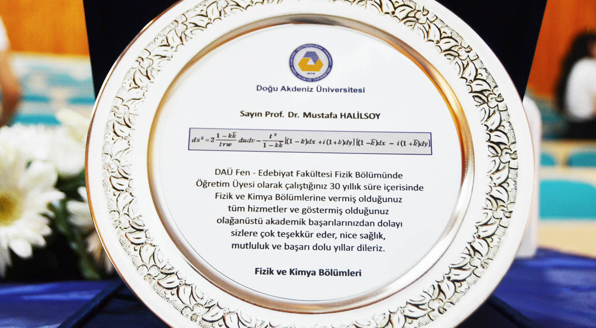 Speaking at the ceremony, Head of Physics and Chemistry Departments Prof. Dr. İzzet Sakallı drew attention to Prof. Dr. Mustafa Halilsoy’s devotion to physics and his contributions to the world literature and EMU. Prof. Dr. İzzet Sakallı stated that Halilsoy will never retire from research and science. Dean of the Faculty of Arts and Sciences Prof. Dr. Mehmet Ali Özarslan stated that Faculty of Arts and Sciences is one of the first faculties of the university and Prof. Dr. Halilsoy is one of the first academicians of the said faculty. Prof. Dr. Mehmet Ali Özarslan said “Prof. Dr. Halilsoy provided great service to our faculty. He is a great lecturer from whom we always get inspired. There is retirement only in official dimension. Yet, retirement does not exist in science. Prof. Dr. Halilsoy will continue to be with his students and conduct research. Thank you for being one of the most important parts of this faculty ”.