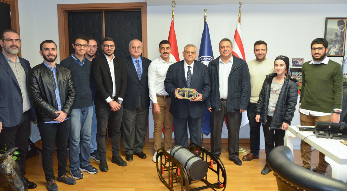 Eastern Mediterranean University Institute of Electrical and Electronics Engineers Student Branch (EMU-IEEE) Robotics Team is preparing for ROBOSUB 2019 Autonomous Submarine Competition. The most prestigious universities in the world will compete at ROBOSUB 2019 which will take place in California, USA. After winning the “Mind Control” category of ROBOTEX 2018 in Estonia, EMU-IEEE Robotics Team visited EMU Rector Prof. Dr. Necdet Osam along with Electrical and Electronic Engineering Department Chair Prof. Dr. Hasan Demirel in order to discuss their future projects. EMU-IEEE Robotics Team presented their submarine robot “Caretta2” to Prof. Dr. Osam and asked for his support. Prof. Dr. Osam stated that EMU competes with the world’s leading universities and he will provide full support for EMU-IEEE Robotics Team.