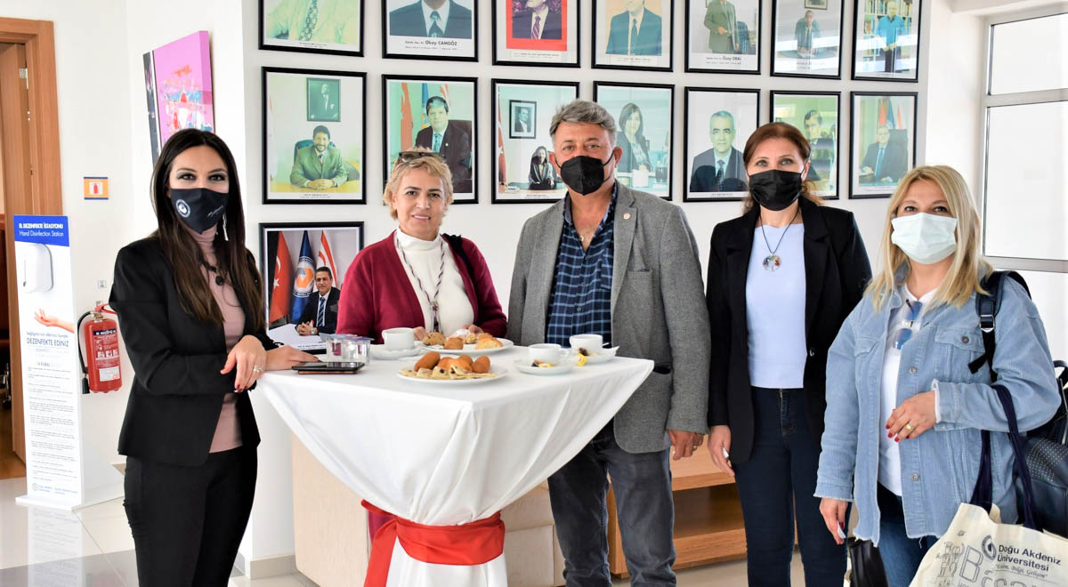 18 female mukhtars, who came to the Turkish Republic of Northern Cyprus (TRNC) from Eskişehir, the Republic of Turkey, as part of the 8 March International Women’s Day celebrations at the invitation of the Famagusta Mukhtar’s Association, visited the Eastern Mediterranean University (EMU) on Friday, 4 March, 2022. During the visit that took place at EMU Senate Room at 14:30, Eskişehir’s female mukhtars met with EMU Vice Rector for Social and Cultural Affairs Prof. Dr. Deniz İşçioğlu. Famagusta Mukhtar’s Association President Mustafa Yeşilleme, Eskişehir Mukhtar’s Association President Hasan Güler and Eskişehir Mukhtar’s Association Vice Presidents Sülbiye Bilen and Serpil Üstsoy were also present during the visit.