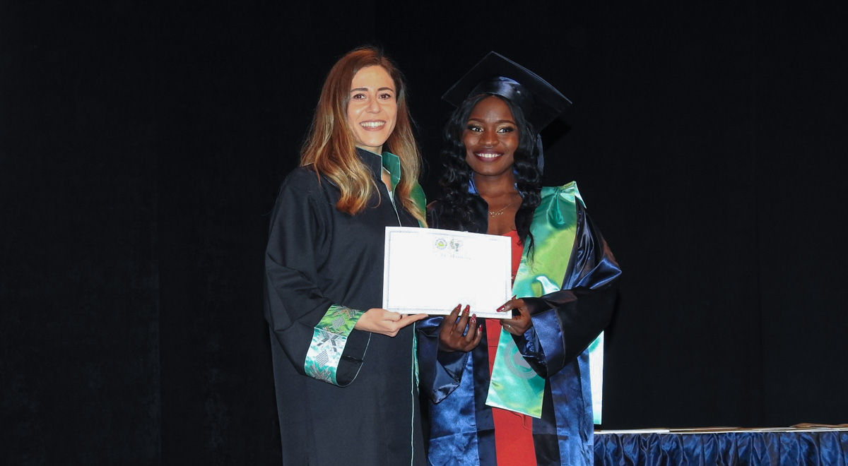After the valedictorians of the Pharm. B. and Pharm. D. programs delivered their speeches, EMU Dr. Fazul Küçük Faculty of Medicine Dean Prof. Dr. Nahide Gökçora presented the graduates with their certificates. Afterwards, the students’ Oath Certificates were presented by Faculty of Pharmacy Vice-Deans and Faculty Members. After the graduates took their oaths collectively on stage and threw their caps in the air as a symbol of their achievement, the ceremony ended following a cocktail organised in their honour.
