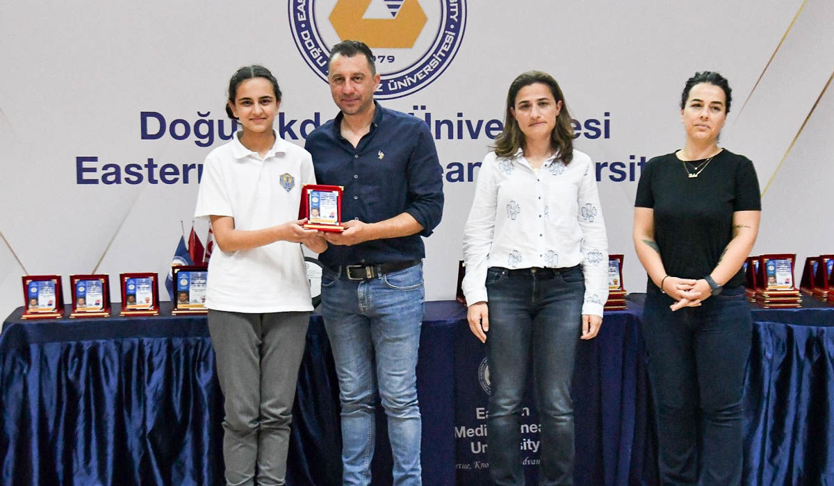 Following the speeches, plaques were presented to the schools by EMU Board of Trustees President Dr. Erdal Özcenk, EMU Rector Prof. Dr. Aykut Hocanın, General Secondary Education Director Cengiz Uzun, EMU Vıce Rectors Prof. Dr. Hasan Demirel and Prof. Dr. Hüseyin Aktuğlu, Faculty of Arts and Sciences Dean Prof. Dr. Mehmet Ali Özarslan, Ali Karasel and Osman Çetintaş’s families, and the members of the “Champion Angels Association” Executive Board members at the ceremony.