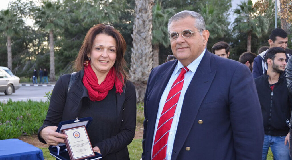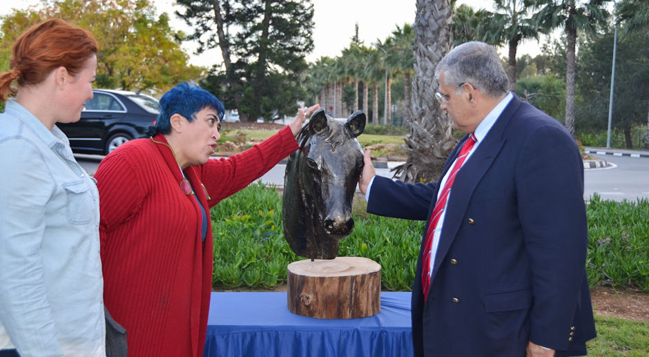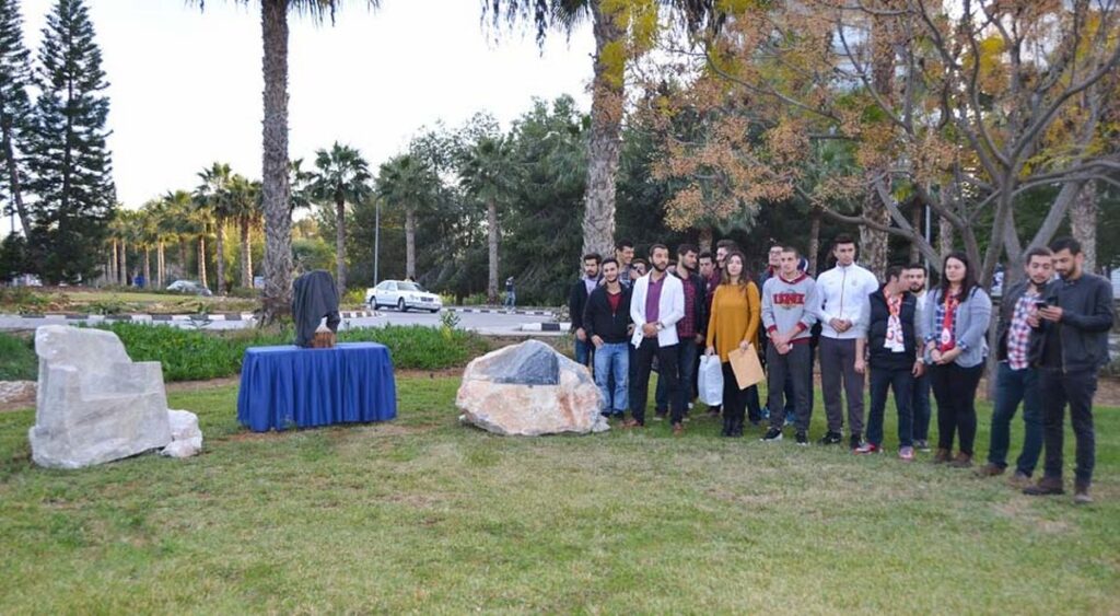 Works of art produced within the framework of the said event were exhibited at various points on the campus. Statues produced during the workshops were exhibited in front of the Rector’s Office. Being aware of EMU Rector Prof. Dr. Osam’s close interest towards horses, artist Nurdan Yurtbay presented a statue of horse to Prof. Dr. Osam as a present.