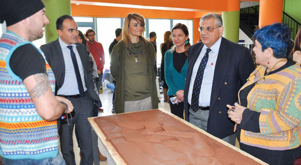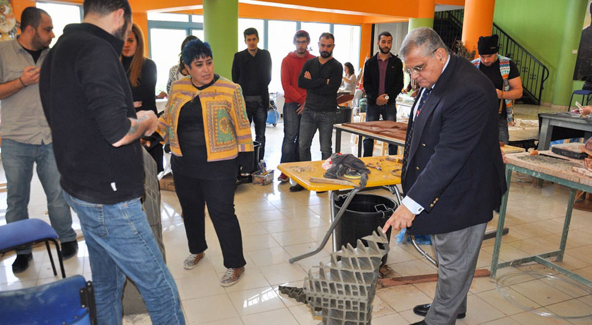 EMU Rector Prof. Dr. Necdet Osam visited the workshop site of the said event and analysed the production phases of different works of art. Receiving information about the activities from Ateşin, Prof. Dr. Osam expressed his pleasure in observing that meaningful activities as such are taking place within the university.