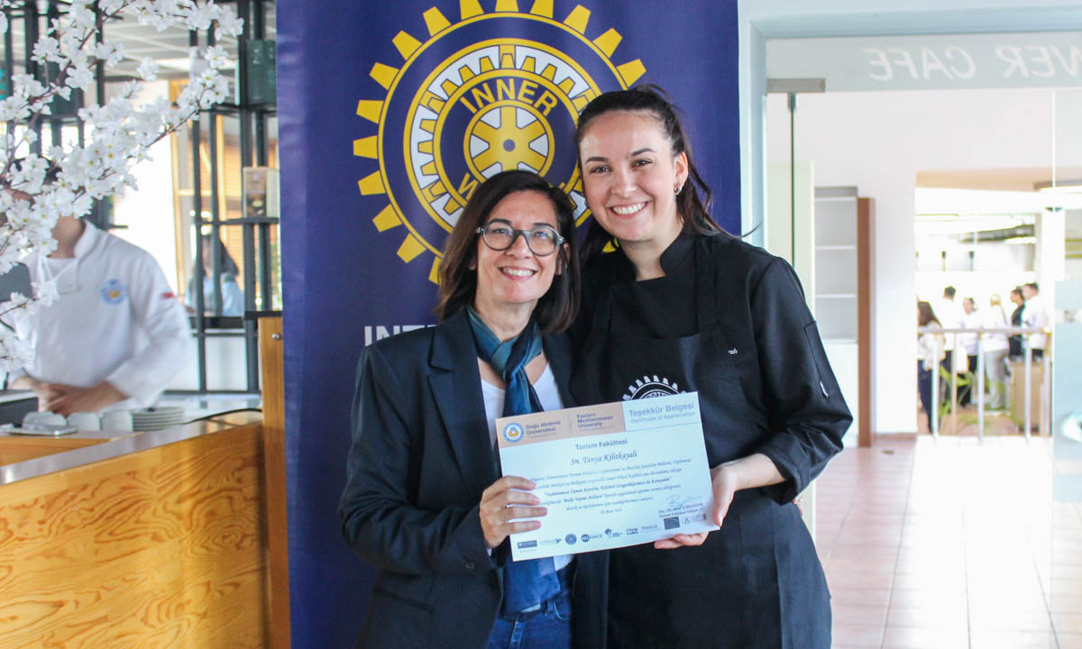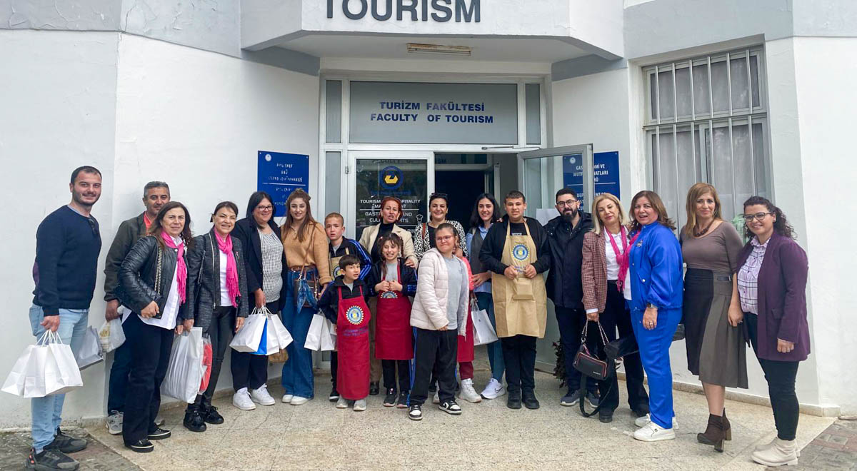Speaking on behalf of the Inner Wheel members participating the event, the Chair of the Inner Wheel Club, Eser Ruso Özyalçın, provided information about the club and expressed happiness for their involvement with children and elderly individuals through the Eastern Mediterranean University (EMU) Tourism Faculty and the Community Involvement Center. Also delivering a speech, Özge Yiğit, the Responsible Teacher of the Ötüken Special Education Center, mentioned that when the EMU CIC Board visited their school, the project was just a small seedling in terms of idea, but later, the Chair of CIC, Nazenin Ruso Kandemir, took that seedling, nurtured it into a sapling, and with the collaboration of EMU Tourism Faculty, Begonvil Inner Wheel Club, Chef Tanya Kilitkayalı, and Iskele Municipality, this sapling has grown into a tree.
