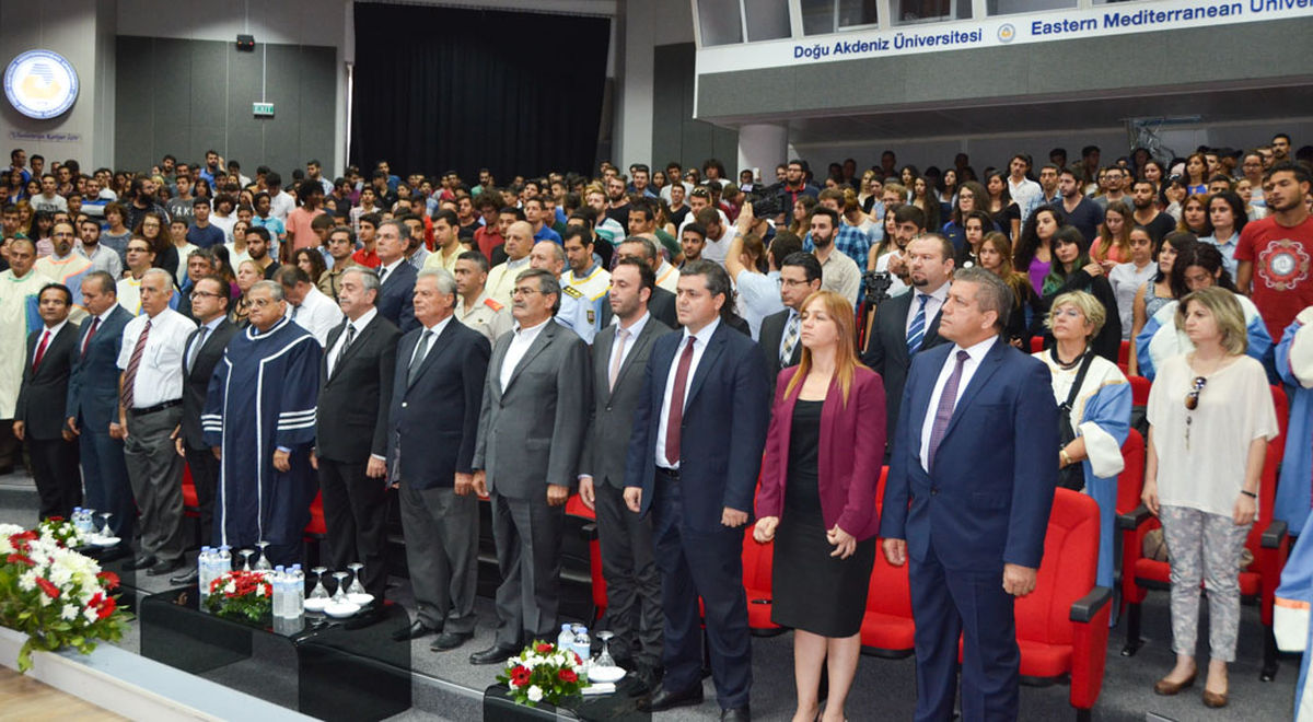 Doğu Akdeniz Üniversitesi (DAÜ) 2015 – 2016 Akademik Yılı İlk Dersi ve Açılış Töreni 13 Ekim 2015 Salı günü, saat 10:30’da, Mustafa Afşin Ersoy Salonu’nda Kuzey Kıbrıs Türk Cumhuriyeti (KKTC) Cumhurbaşkanı Mustafa Akıncı’nın “Kıbrıs Sorununda Üniversitelerin Yeri” konulu verdiği ilk ders sunumu başladı.