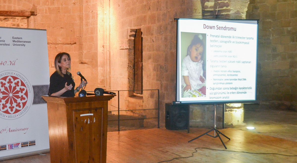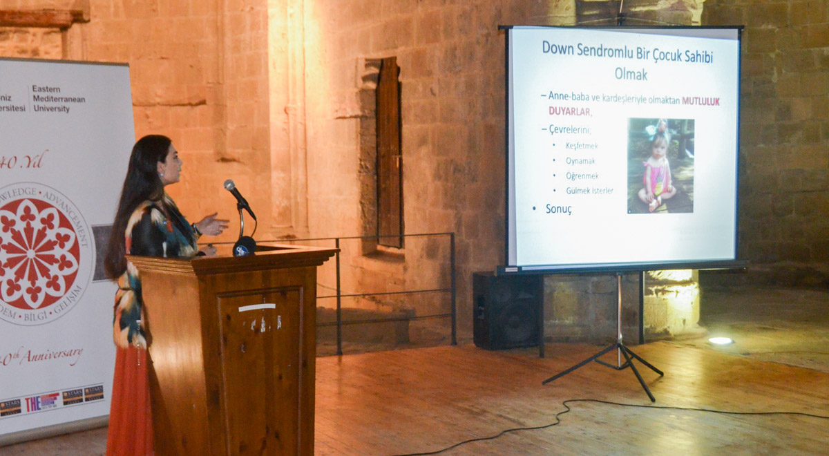 Doğu Akdeniz Üniversitesi (DAÜ) Dr. Fazıl Küçük Tıp Fakültesi, Kuzey Kıbrıs Türk Cumhuriyeti (KKTC) Sağlık Bakanlığı ve Gazimağusa Özel Eğitim Merkezi iş birliği ile Girne Inner Wheel sponsorluğunda düzenlenen “Down Sendromu Farkındalık Sempozyumu”, Lefkoşa Bedesten’de yapıldı. Sempozyumun açılış konuşmasını DAÜ Dr. Fazıl Küçük Tıp Fakültesi Dekanı Prof. Dr. Nahide Gökçora gerçekleştirdi. Prof. Dr. Gökçora, konuşmasında Down Sendromu ile ilgili farkındalığın artırılması ve yaygınlaştırılmasının önemine dikkat çekti.