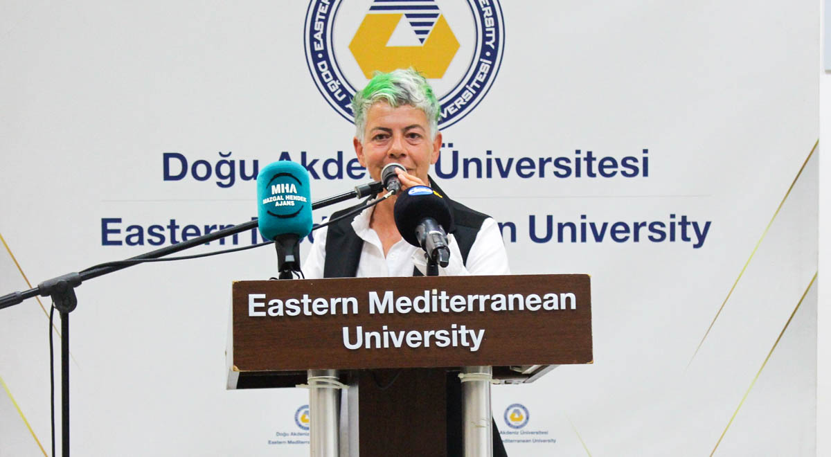 Sergi açılışında konuşan DAÜ Sanat Koordinatörü Şonya, katılımlarından dolayı herkese teşekkürlerini ileterek, DAÜ’nün her 15 Nisan’da önemli bir sergiye ev sahipliği yaptığını belirtti. Sanatın son derece önemli olduğunu düşündüklerini aktaran Şonya, 15 Nisan tarihinin sanatın önemine dikkat çekmek için kutlanmaya başlanan bir gün olduğunu vurguladı. Şonya konuşmasında sanatın sokaklara inmesini temenni etti. 15 Nisan Dünya Sanat Günü kapsamında Rauf Raif Denktaş Kültür ve Kongre Sarayı içinde bulunan iki sergi salonuna Kıbrıs sanat tarihinde önemli bir yere sahip olan merhum sanatçılardan Ayhan Menteş ve Ali Atakan’ın isimlerinin verildiğini belirten Şonya, arşiv ve müze çalışmalarının önemine değindi.