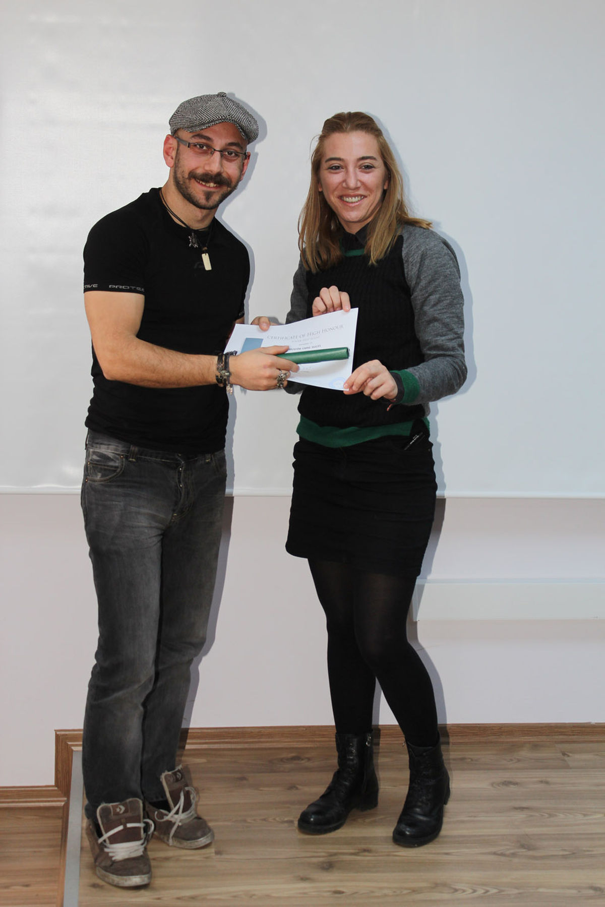 Doğu Akdeniz Üniversitesi (DAÜ) İletişim Fakültesi’nde, 2015 – 2016 Akademik Yılı Güz Dönemi’nde Gazetecilik Bölümü’nde başarı gösteren 15 öğrenci Şeref ve Yüksek Şeref belgeleri ile ödüllendirildi. Törende açılış konuşmasını gerçekleştiren Doç. Dr. Nurten Kara, belge almaya hak kazanan öğrencileri kutlarken, önümüzdeki dönemlerde bölümün yeni medya ve dijital gazetecilik dersleriyle donatılacağı müjdesini de verdi.