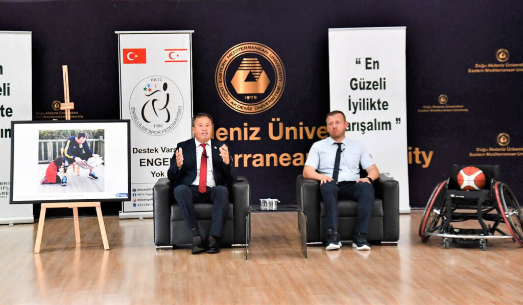 Kültür, spor ve sanat ile hep birlikte daha güçlü yarınlara ulaşmayı hedefleyen etkinliklerin ilki, saat 11:00’de, DAÜ Aktivite Merkezi’nde, Atatürkçü Düşünce Kulübü ve Özel Eğitim Kulübü tarafından düzenlenen ve KKTC Cumhurbaşkanlığı Engelliler Komitesi Başkanı Ahmet Akdeniz’in “Engelli Bireylerin Toplumla Bütünleşik Yaşamı: Sanat ve Spor” başlıklı söyleşisi oldu.