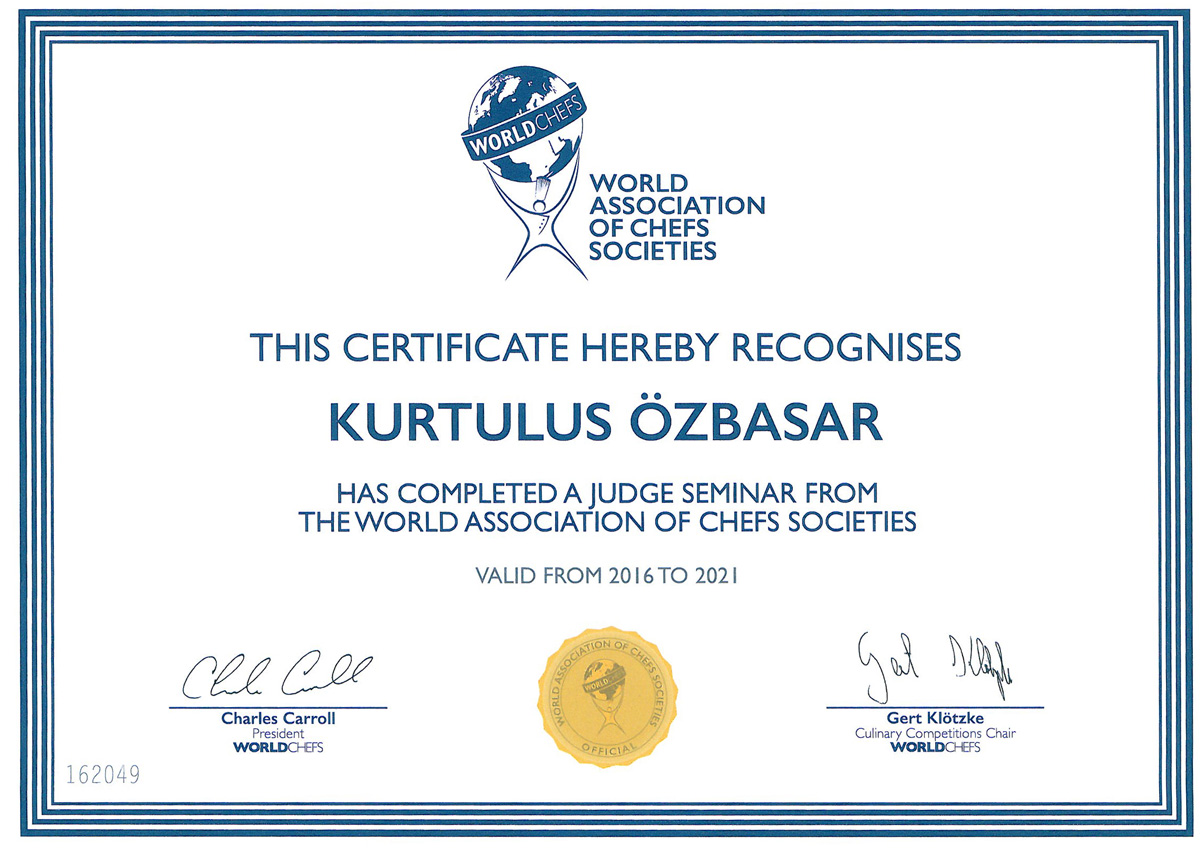 Doğu Akdeniz Üniversitesi (DAÜ) Turizm Fakültesi, Gastronomi ve Mutfak Sanatları Bölümü Öğretim Görevlisi Kurtuluş Özbaşar ile Uzman Hakan Açıl, 14. Uluslararası İstanbul Mutfak Günleri çerçevesinde, kısa adı WACS olan World Association of Chefs Societies – Dünya Şefler Federasyonu tarafından festival kapsamında organize edilmiş olan ve Dünya Şefler Federasyonu Yarışma Komiteleri Başkanı Gert Klötzke tarafından yönetilen “Uluslararası Jürilik Kursu”na katılarak, uluslararası mutfak yarışmalarında jüri üyesi olarak görev alabilecekleri sertifikayı almaya hak kazandılar.