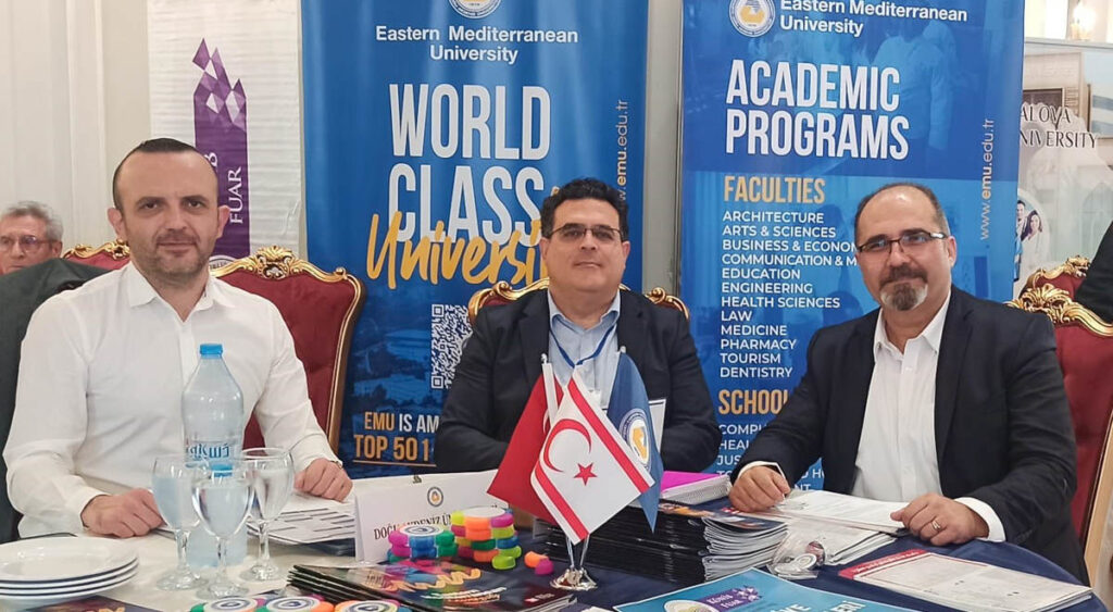 Prof. Dr. Hocanın ve heyeti, fuar alanında kendilerine özel olarak ayrılan alanda öğrenci adayları ve velilerle bir araya geldi. Fuarda 150’nin üzerinde öğrenci adayıyla temas kuruldu. Prof. Dr. Hocanın’a fuara katılımından dolayı KÜNİB Başkanı Prof. Dr. Ramazan Korkmaz ile KÜNİB Eş Başkanı Dr. Kamran Pashai tarafından teşekkür plaketi takdiminde bulunuldu. Prof. Dr. Hocanın da Prof. Dr. Korkmaz ve Dr. Pashai’ye Kıbrıs’a özgü Lefkara işi pano takdiminde bulundu.