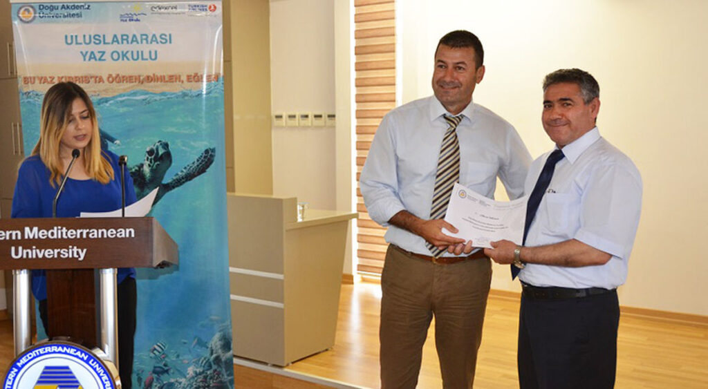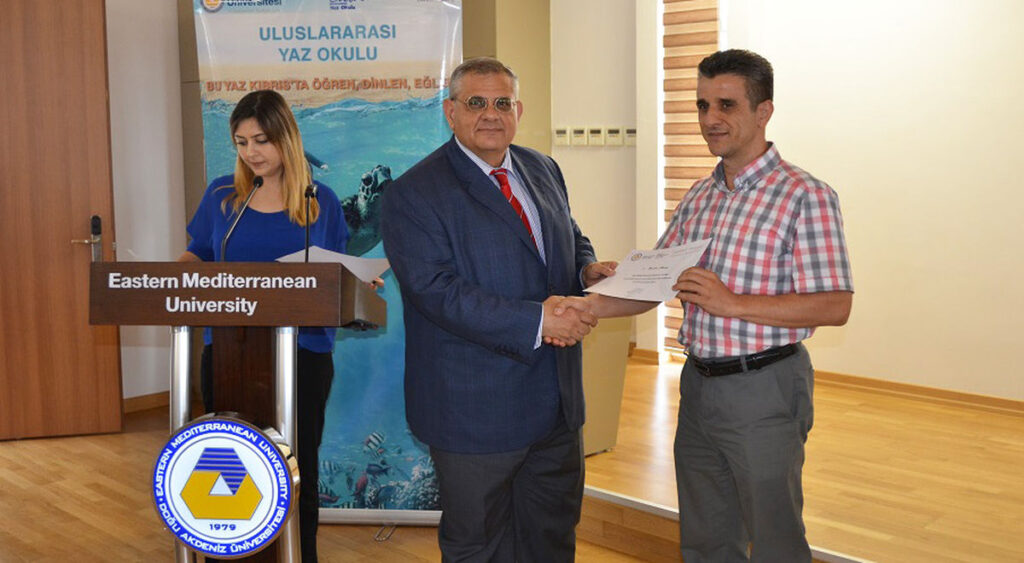 Ulaş Gökçe’nin bilgilendirme sunumunun ardından DAÜ Uluslararası Yaz Okulu’na katkıda bulunan personele Prof. Dr. Osam ve Prof. Dr. Amca tarafından teşekkür belgesi takdim edildi. Uluslararası Yaz Okulu Tanıtım ve Teşekkür Toplantısı verilen kokteylin ardından sona erdi.