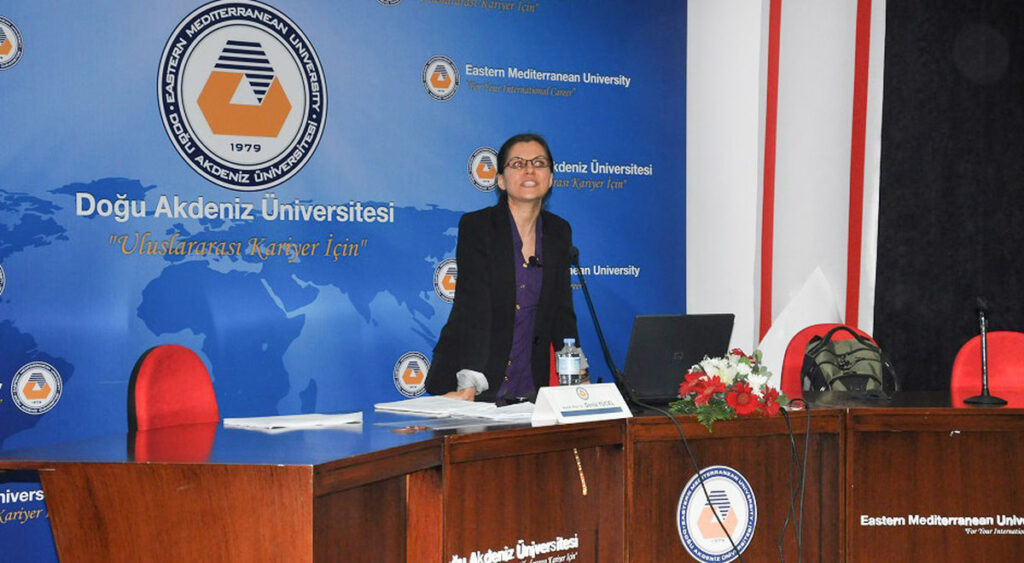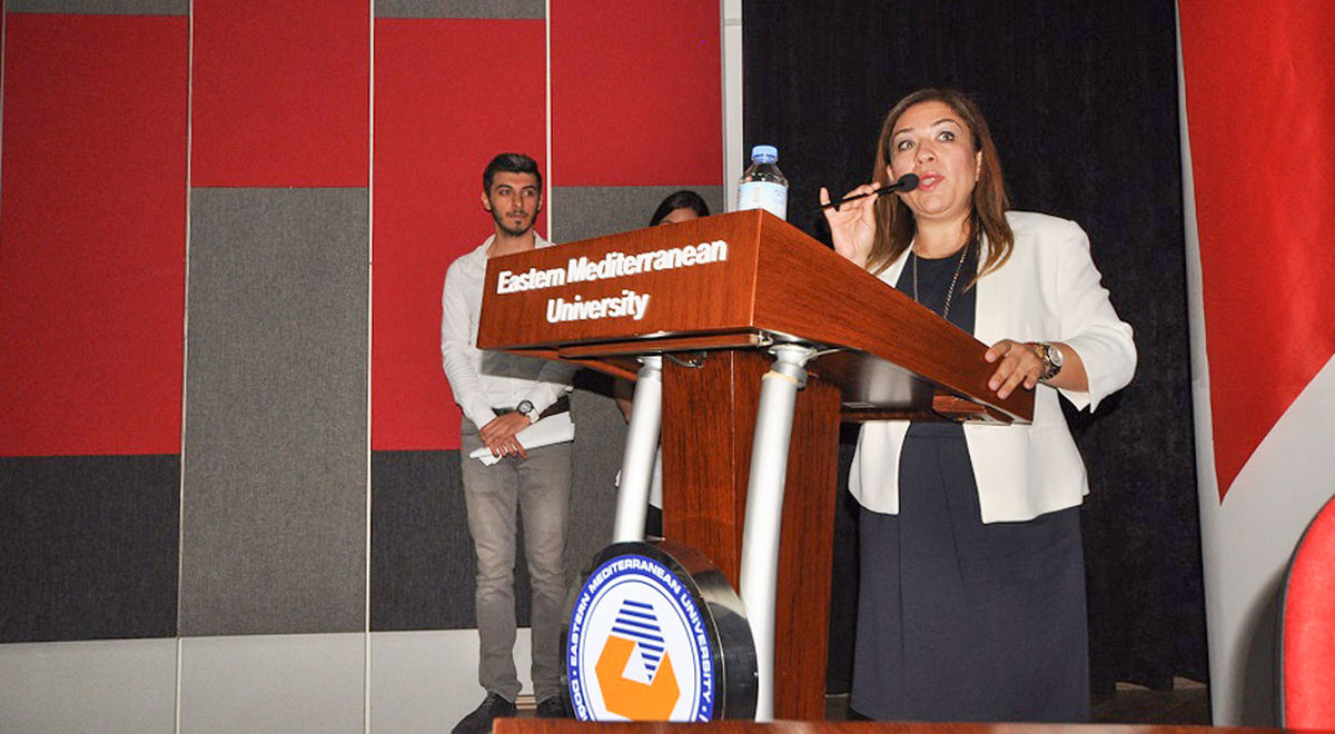 Son olarak kürsüye gelen DAÜ Rektör Yardımcısı Prof. Dr. Hıfsiye Pulhan ise “Özellikle katılmak istediğim bir etkinlik olduğunu vurgulamak isterim.” diyerek başladığı konuşmasında, DAÜ’deki fakültelerin gerçekleştirmiş olduğu etkinliklerin DAÜ Yönetimi tarafından önemsendiğini, bu tür etkinliklerin öğrenciler arasında köprü oluşturduğunu ve bu tür faaliyetlere her zaman destek olacaklarını kaydetti.