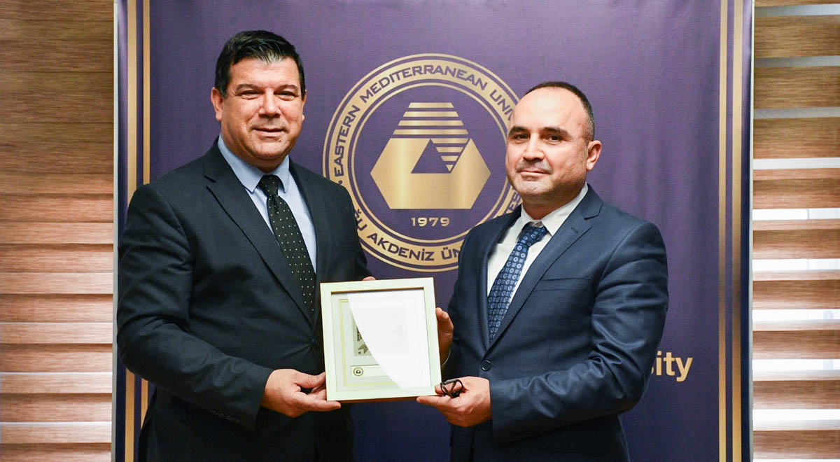 İmza töreninin ardından Prof. Dr. Kılıç tarafından Prof. Dr. Fener’e Kıbrıs’a özgü hediye takdiminde bulunurken, Prof. Dr. Fener tarafından Pof. Dr. Kılıç’a Teknokent’e özgü hediye takdim edildi.