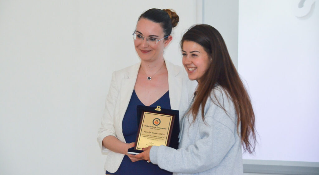 Doğu Akdeniz Üniversitesi (DAÜ) Sağlık Bilimleri Fakültesi, Beslenme ve Diyetetik Bölümü tarafından organize edilen “Yaşam Triatlonu: Beslenme, Spor, Dinlenme” başlıklı konferans, geçtiğimiz günlerde DAÜ Sağlık Bilimleri Fakültesi Konferans Salonu’nda gerçekleştirildi. Konferansın onur konuğu, ada genelinde ilk ve tek kadın “Ironman” unvanına sahip Diyetisyen Emine Uluçay oldu. Spor alanındaki başarılarını ve tecrübelerini DAÜ’lü öğrencilerle paylaşan Uluçay, teoride öğrenilen spor beslenmesi bilgilerinin pratikteki uygulanış şeklini de yaşanmış örneklerle öğrencilere aktardı. Uluçay, aynı zamanda beslenme düzeninin müsabaka sürecindeki etkilerinden bahsetti. Konferans ile DAÜ Sağlık Bilimleri Fakültesi, Beslenme ve Diyetetik Bölümü öğrencilerinin birçok başarıya imza atmış bir sporcu ile aynı ortamda bulunmaları ve deneyimlerinden yararlanarak bakış açılarını genişletmeleri amaçlandı.