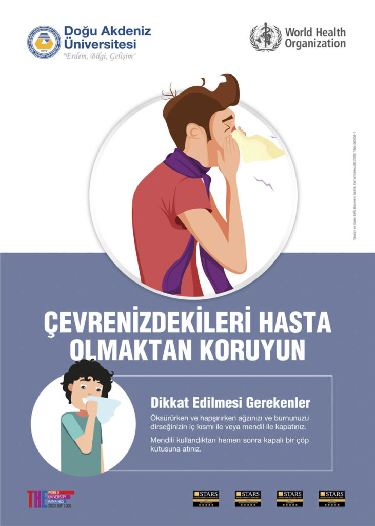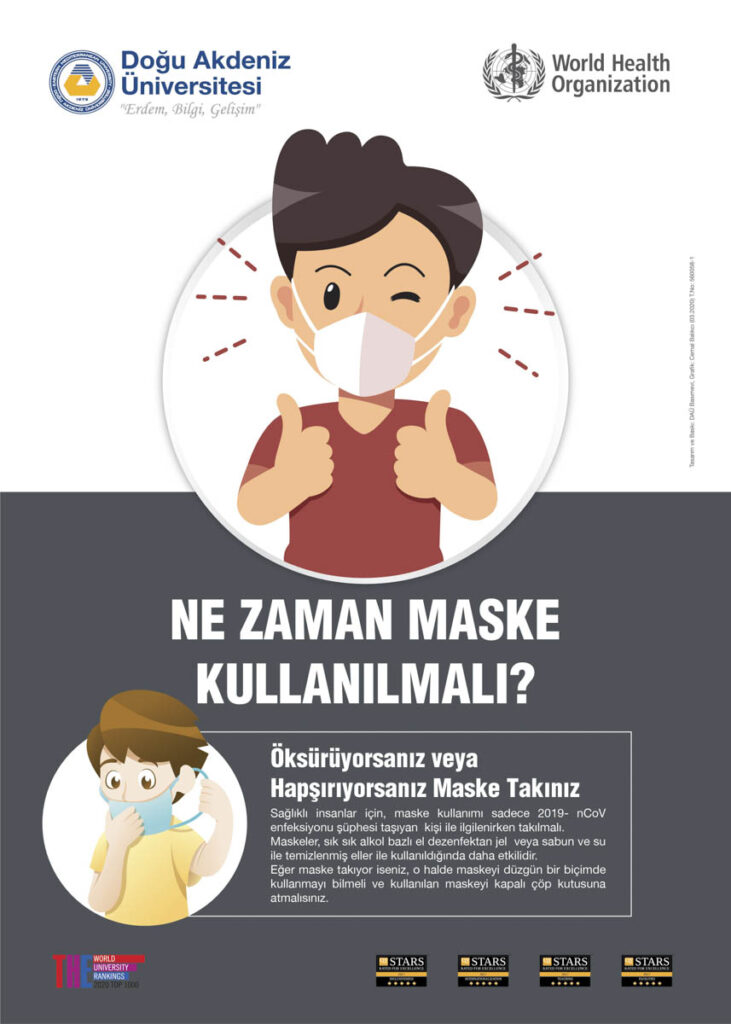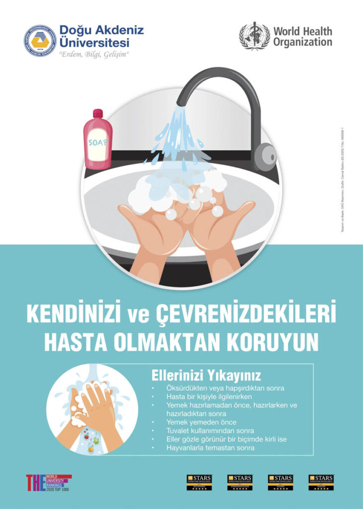 Doğu Akdeniz Üniversitesi (DAÜ), halk arasında “Koronavirüs” olarak bilinen COVID-19 virüsüne karşı bir dizi önlem aldı. COVID-19’un tespit edildiği ülke sayısındaki artış nedeniyle alınan önlemler kapsamında, enfeksiyonun Kuzey Kıbrıs Türk Cumhuriyeti’ne (KKTC) ulaşması durumunda tüm öğrencilerin ve personelin korunmasına yardımcı olmak için “COVID-19 Farkındalık Komitesi” kuruldu ve etkin hale getirildi. COVID-19 Farkındalık Komitesi tarafından konuya ilişkin yapılan açıklamada, alınan önlemlere ilişkin bilgi verildi. Komite tarafından 2 Mart 2020’ye kadar Kuzey Kıbrıs Türk Cumhuriyeti’nde hiçbir vaka tespit edilmediği belirtilirken, DAÜ COVID-19 Farkındalık Komitesi’nin, Dünya Sağlık Örgütü’nün tavsiyelerini yakından takip etmekte olduğu ve COVID-19’a karşı koruma konusunda KKTC Sağlık Bakanlığı ile doğrudan temas halinde bulunduğuna dikkat çekildi.