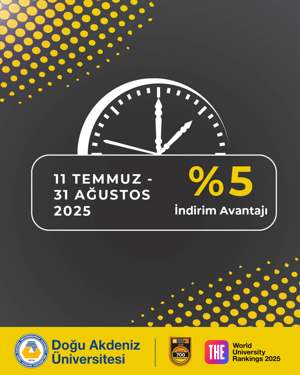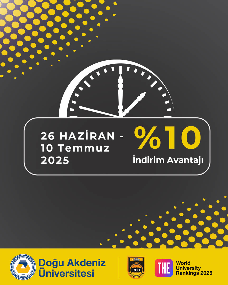 Üniversitemizde lisans ve önlisans öğrencilerimize, eğitim harcı taksit borcu olmaması koşuluyla, 2025-2026 Akademik Yılı’nda KKTC ve TC uyruklu mevcut ve yeni kayıt yapacak öğrenciler ile Yabancı uyruklu mevcut öğrenciler (Yeni kayıt yapacak yabancı öğrenciler hariç) için 2025-2026 Akademik Yılı harçlarını peşin ödemeleri (Yıllık peşin) durumunda net harç üzerinden :