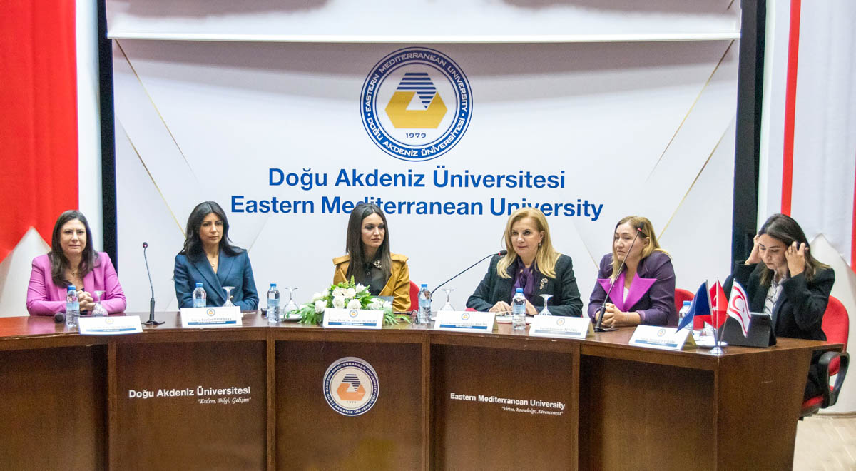 Doğu Akdeniz Üniversitesi (DAÜ) Rektörlüğü tarafından 8 Mart Dünya Emekçi Kadınlar Günü dolayısıyla, Kuzey Kıbrıs Türk Cumhuriyeti (KKTC) Cumhuriyet Meclisi’nde görev yapan kadın milletvekillerinin katılımıyla panel düzenlendi. Söz konusu panel, 10 Mart 2023 Cuma günü, saat 10:00’da, DAÜ Mustafa Afşin Ersoy Salonu’nda gerçekleşti.