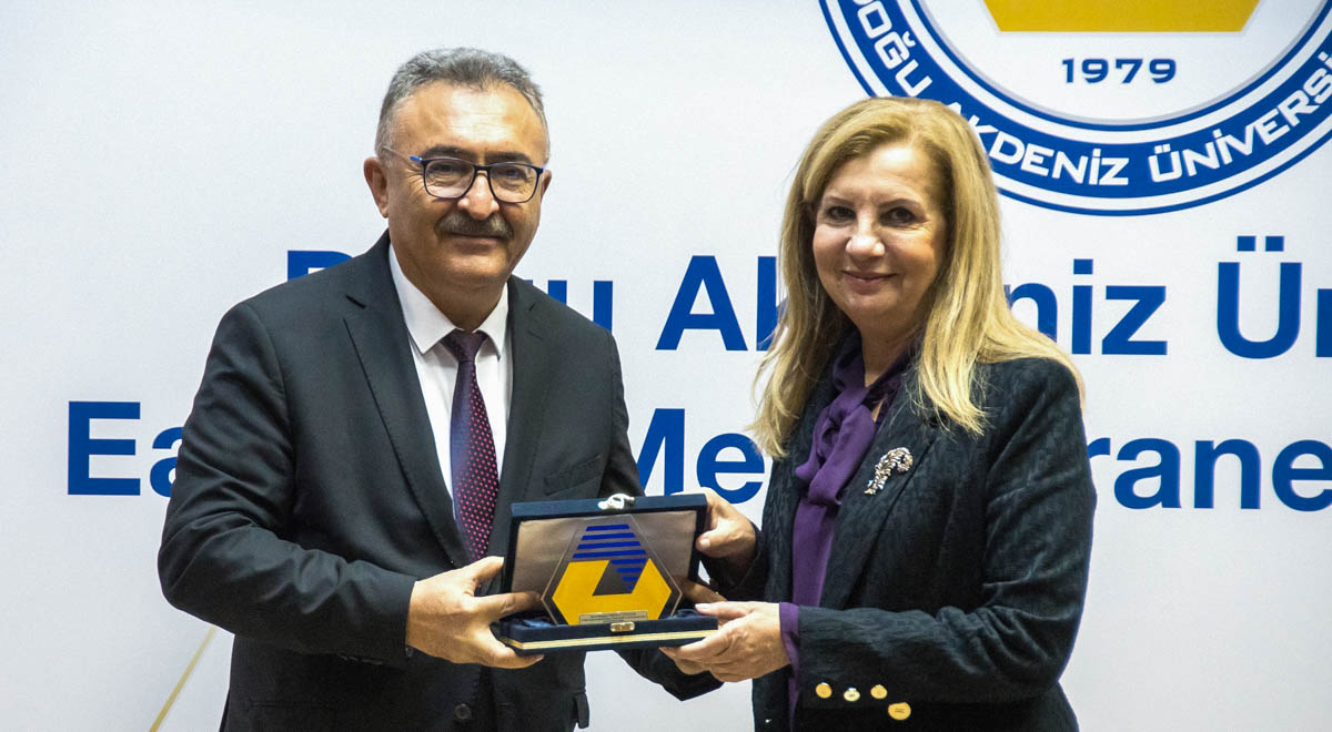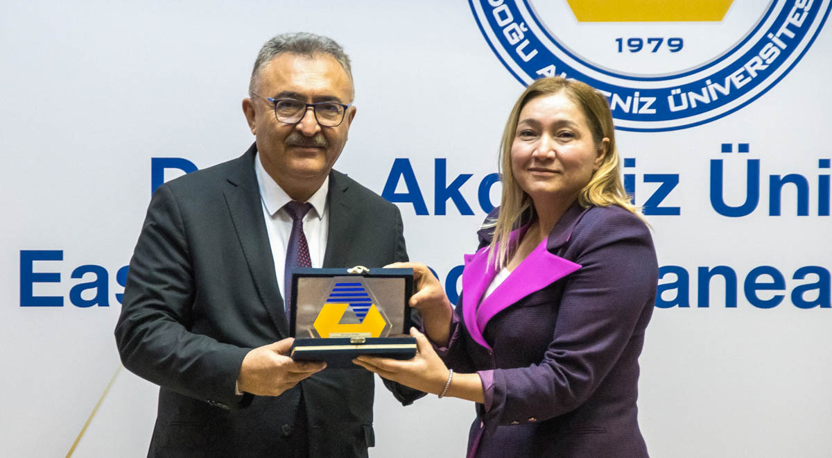 Panel soru cevap bölümünün ardından DAÜ Vakıf Yöneticiler Kurulu Başkanı Dr. Özcenk ve Rektör Yardımcısı Prof. Dr. İşçioğlu tarafından panelistlere teşekkür plaketi takdiminde bulunuldu.