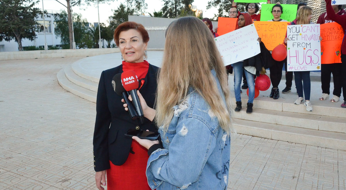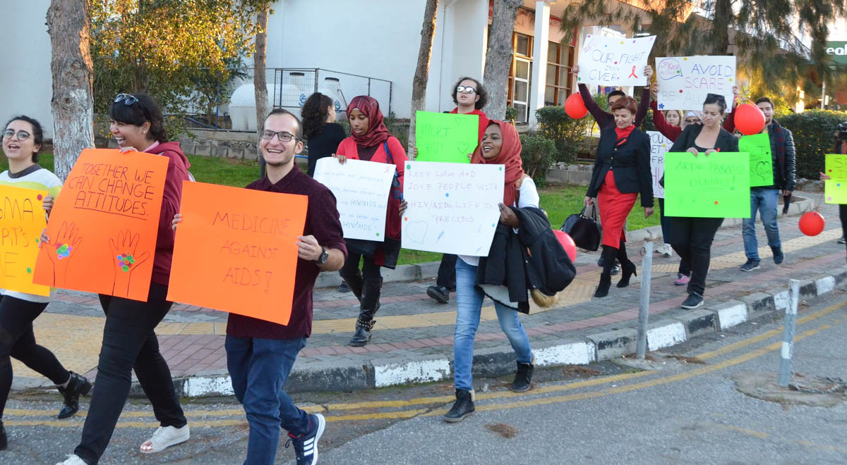 Öte yandan DAÜ öğrencileri tarafından 1 Aralık Dünya AIDS Günü dolayısıyla farkındalık yürüyüşü gerçekleştirildi. 1 Aralık 2017 Cuma günü, saat 16:00’da, DAÜ Atatürk Meydanı’nda toplanan öğrenciler, ellerinde taşıdıkları renkli pankartlarla AIDS’e karşı farkındalık yaratmayı amaçlayan mesajlarını paylaştılar ve AIDS hastalığına karşı alınması gereken önlemler ile ücretsiz tedaviye erişim konularındaki sloganlarıyla dikkat çektiler. Ardından DAÜ Dr. Fazıl Küçük Tıp Fakültesi Dekanı Prof. Dr. Nahide Gökçora, 1 Aralık Dünya AIDS Günü etkinliklerine ilişkin basına açıklamalarda bulundu.