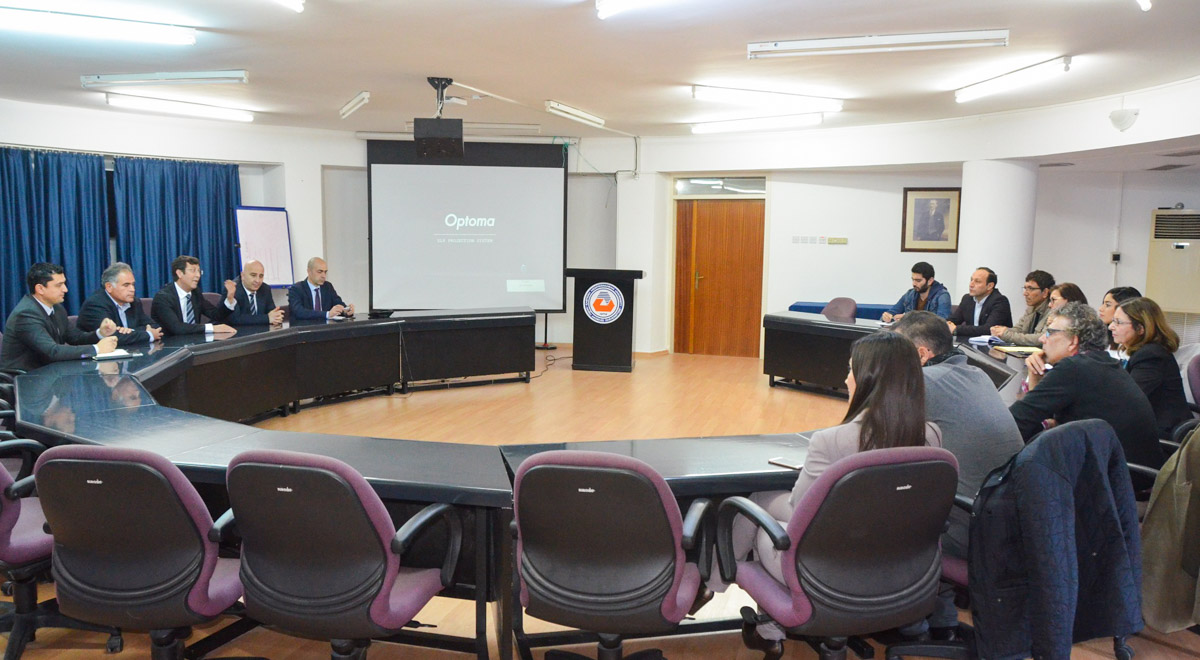 Kuzey Kıbrıs Türk Cumhuriyeti (KKTC) Merkez Bankası Başkanı Rifat Günay, Doğu Akdeniz Üniversitesi’nde (DAÜ) bilgilendirme toplantısı gerçekleştirdi. Başkan Günay, söz konusu toplantıda DAÜ ile Merkez Bankası arasındaki iş birliği protokolüne ilişkin bilgi verdi. Geçtiğimiz günlerde DAÜ İşletme ve Ekonomi Fakültesi Toplantı Salonu’nda gerçekleştirilen toplantıya, DAÜ İşletme ve Ekonomi Fakültesi Dekanı Prof. Dr. Eralp Bektaş, Dekan Yardımcısı Doç. Dr. Deniz İşçioğlu, KKTC Merkez Bankası Temsilcileri ve Fakülte Öğretim Üyeleri katıldı. Başkan Günay, protokolün DAÜ ve KKTC Merkez Bankası’nın topluma hizmet ve KKTC ekonomisine katkı koyma vizyonları çerçevesinde tarafların ortak mutabakatı ile belirleyeceği konularda araştırma, eğitim ve yayın faaliyeti yapmayı amaçladığını ifade etti.