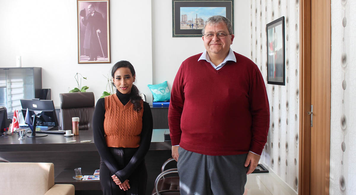DAÜ Mimarlık Bölümü öğrencisi Lugain Talaat Dahab, DAÜ Tanıtım ve Kurumsal İletişimden Sorumlu Rektör Yardımcısı Prof. Dr. Mustafa Tümer’i makamında ziyaret etti. 4 Aralık 2023 Pazartesi günü, saat 10:30’da gerçekleştirilen söz konusu ziyarette eğitim hayatına DAÜ’de başlayan Dahab’a başarılar dileyen Prof. Dr. Tümer, DAÜ’lü olmanın bir ayrıcalık olduğunun altını çizdi. Dahab gerçekleştirdiği konuşmasında DAÜ’de eğitim almaktan ve nesilden nesile DAÜ’lü olmaktan dolayı gurur duyduğunu belirtti.Babasından DAÜ’deki öğrencilik yılları hakkında bilgiler aldığını aktaran Lugain Talaat Dahab, DAÜ’nün Kıbrıs’taki en iyi üniversite olduğunu ve eğitim kalitesinin çeşitli kurumlarca tescillendiğini vurguladı.