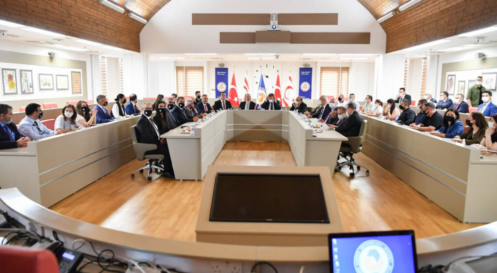 21 Nisan 2021’de Türkiye Cumhuriyeti Ticaret Bakanlığı görevine atanan Doğu Akdeniz Üniversitesi (DAÜ) İşletme ve Ekonomi Fakültesi, İşletme Bölümü Mezunu Dr. Mehmet Muş, Kuzey Kıbrıs Türk Cumhuriyeti’ne (KKTC) gelerek bir dizi temaslarda bulundu. Bakan Muş; programı kapsamında, 4 Haziran 2021 Cuma günü, saat 10:45’te DAÜ’yü de ziyaret etti. DAÜ Senato Salonu’nda gerçekleşen ziyarete, Türkiye Cumhuriyeti Ticaret Bakanı Dr. Mehmet Muş ile birlikte bazı milletvekilleri ve bakanlık yetkilileri, Kuzey Kıbrıs Türk Cumhuriyeti Başbakan Yardımcısı, Ekonomi ve Enerji Bakanı Prof. Dr. Erhan Arıklı, Türkiye Cumhuriyeti Lefkoşa Büyükelçisi Ali Murat Başçeri, DAÜ Vakıf Yöneticiler Kurulu Başkanı Dr. Erdal Özcenk DAÜ Rektörü Prof. Dr. Aykut Hocanın, Vakıf Yöneticiler Kurulu Üyeleri, Rektör Yardımcıları, İşletme ve Ekonomi Fakültesi Öğretim Üyeleri ve Bakan Dr. Muş’un dönem arkadaşları katıldı.
